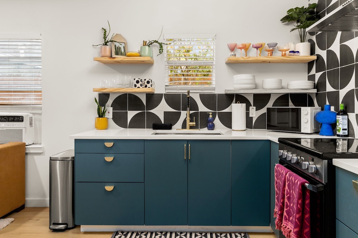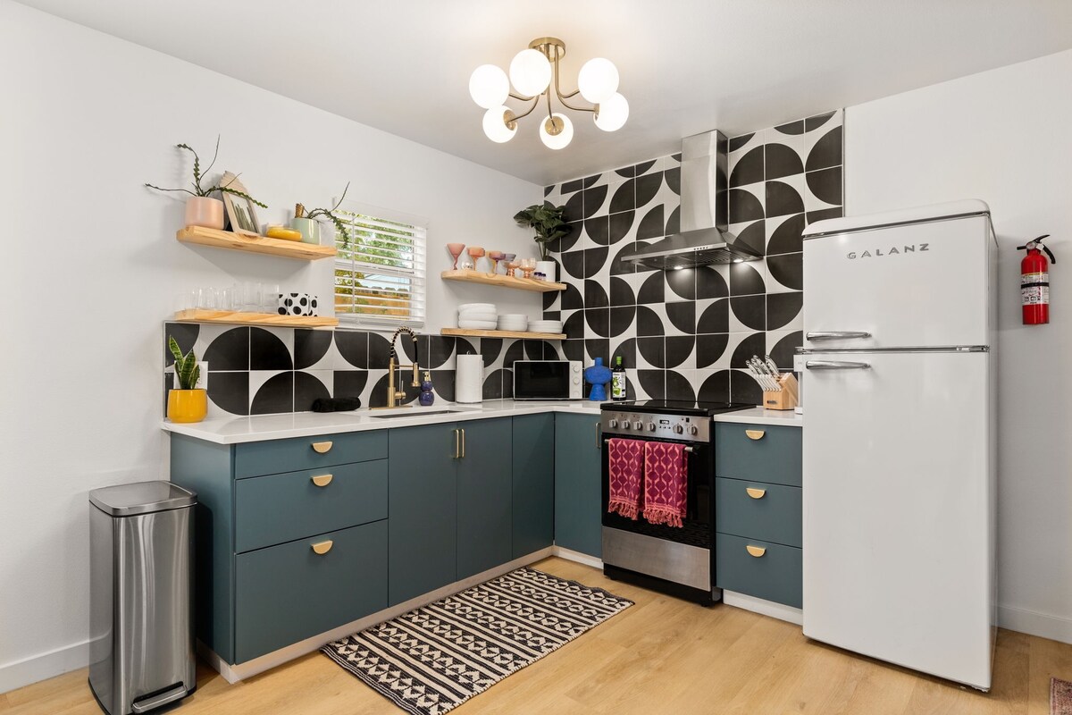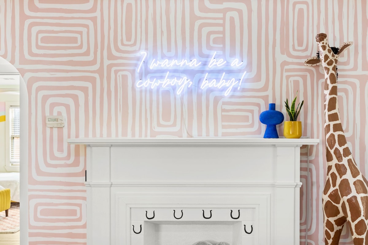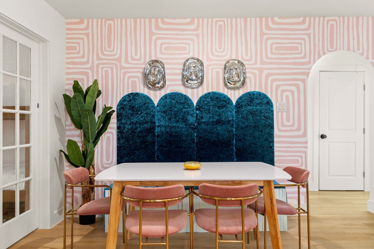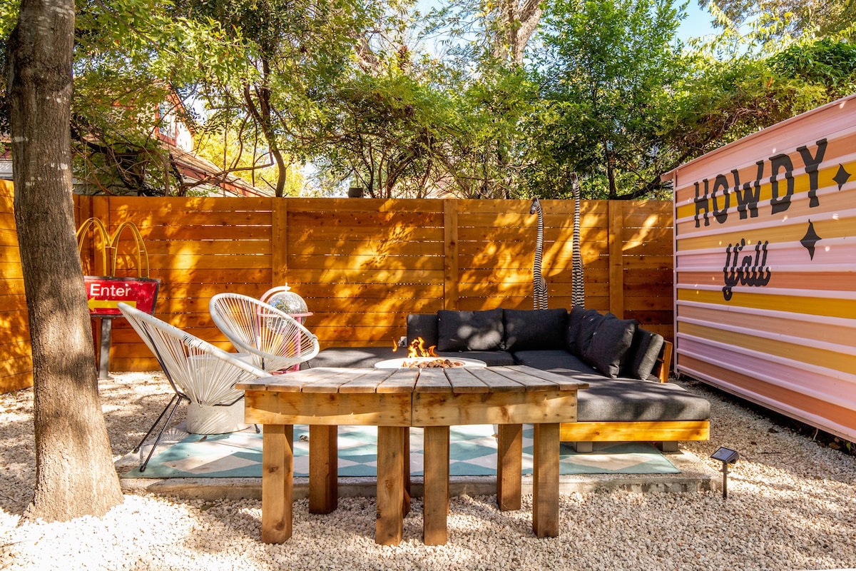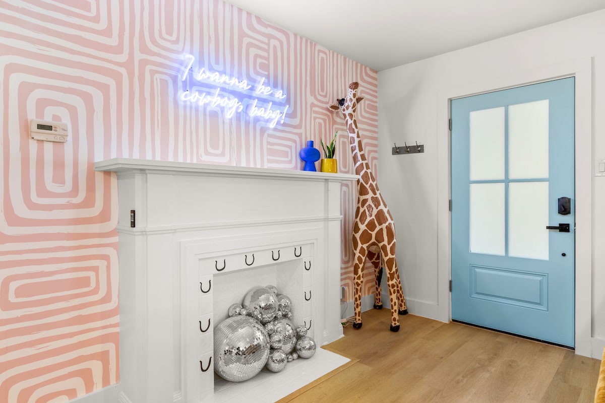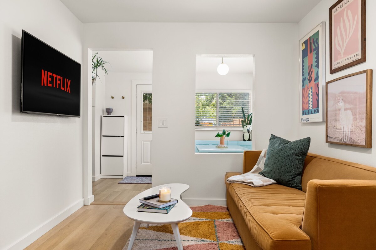 2 miles to downtown! Resort backyard with Heated 8 Ft Cowboy Pool, Ping Pong, and fire pit, 800 sqft of turf for endless fun! This listing is for the main house (3/2) and back house that has a king bed and pull out sofa +kitchen and bath on the same property!