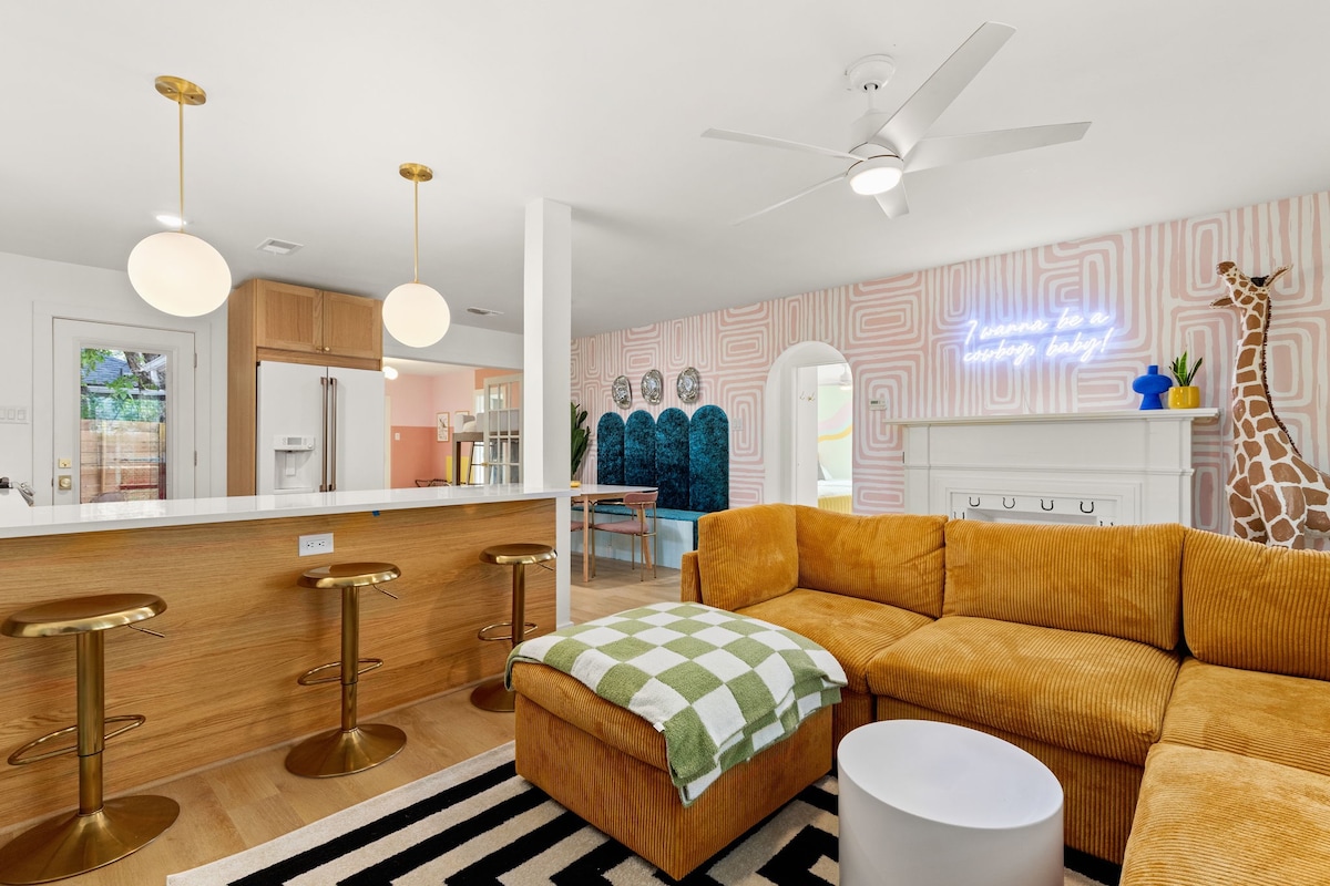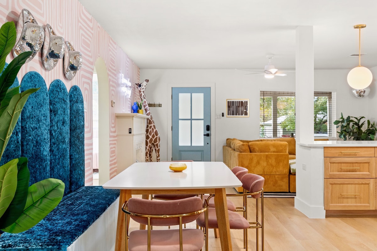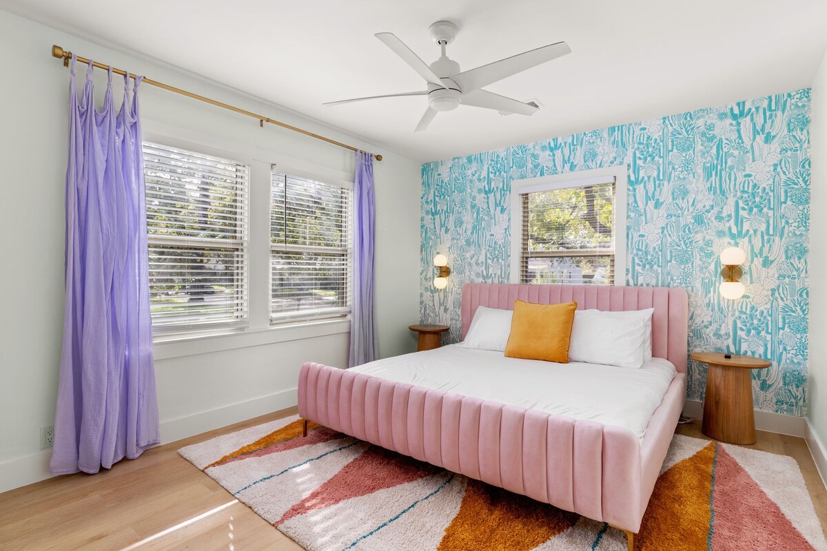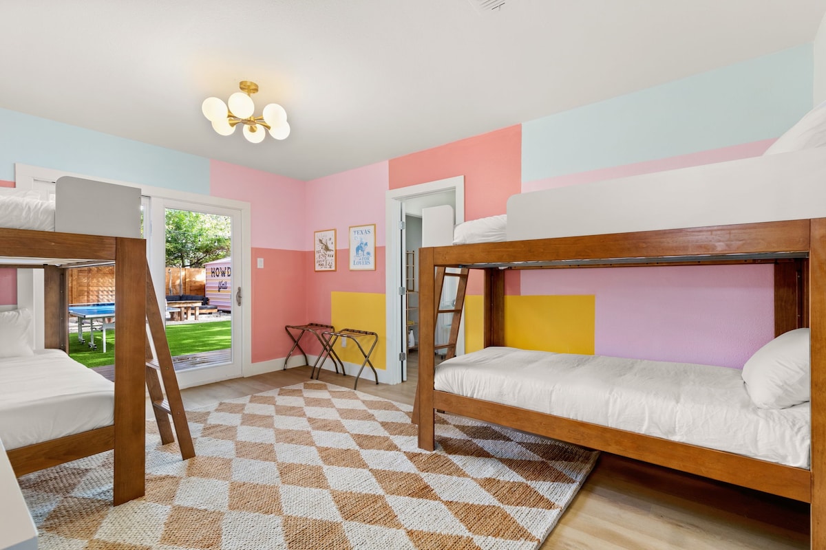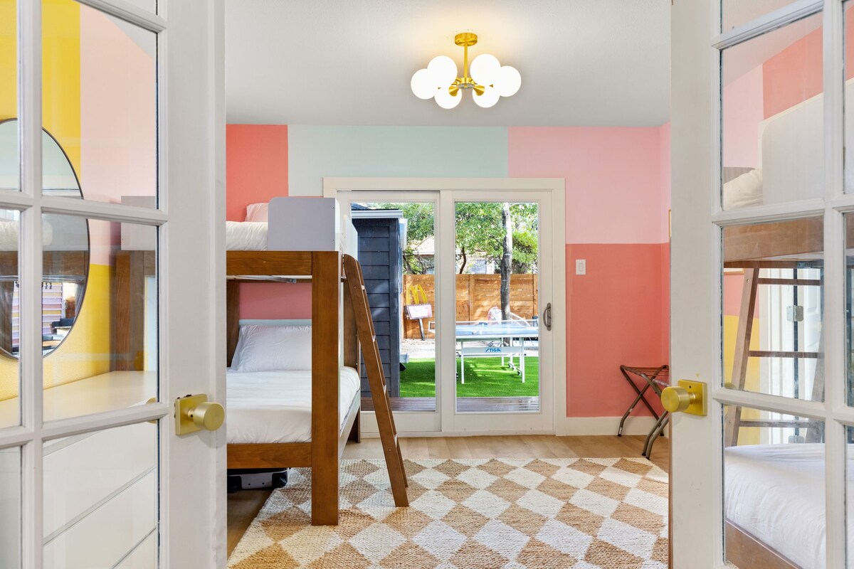 Downtown (8), Rainey St (7), UT Austin (6), The Domain (12), East Austin (9), Zilker (12). Nestled in historic Hyde Park, easy access to H-E-B, Total Wine, Bakeries, coffee shops, and restaurants. Sleeps 14 comfortably with 9 beds.