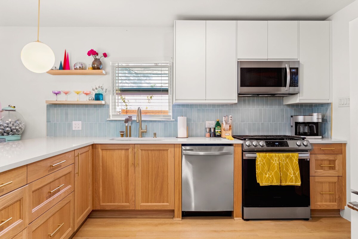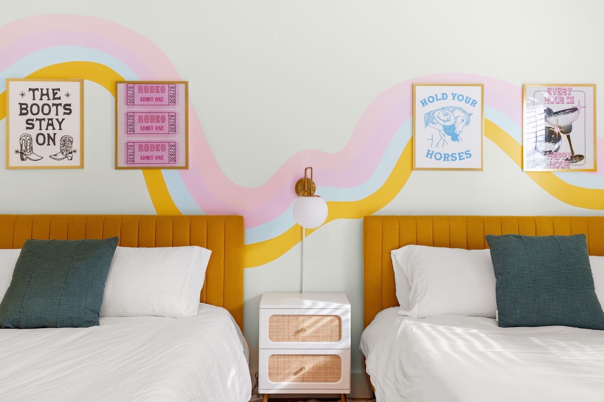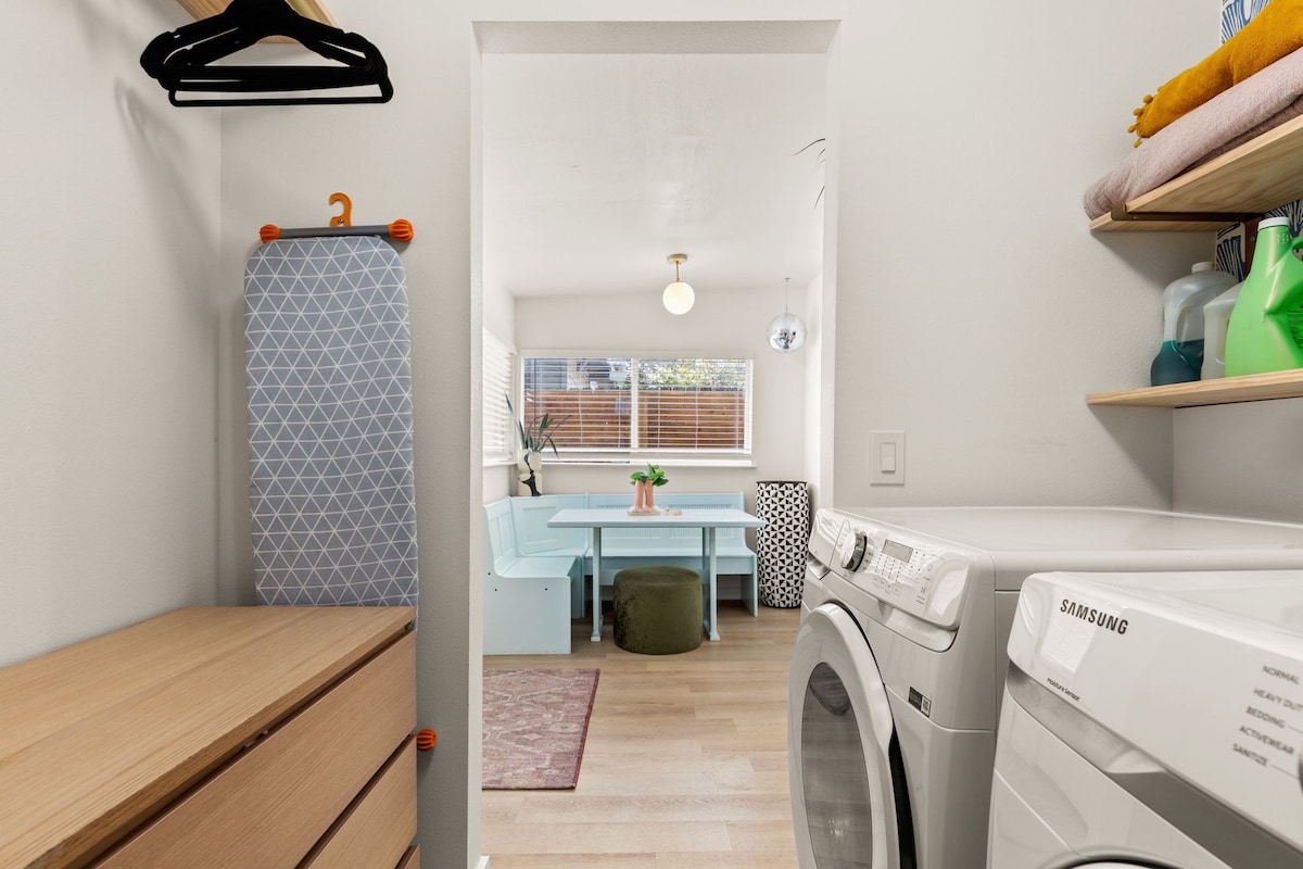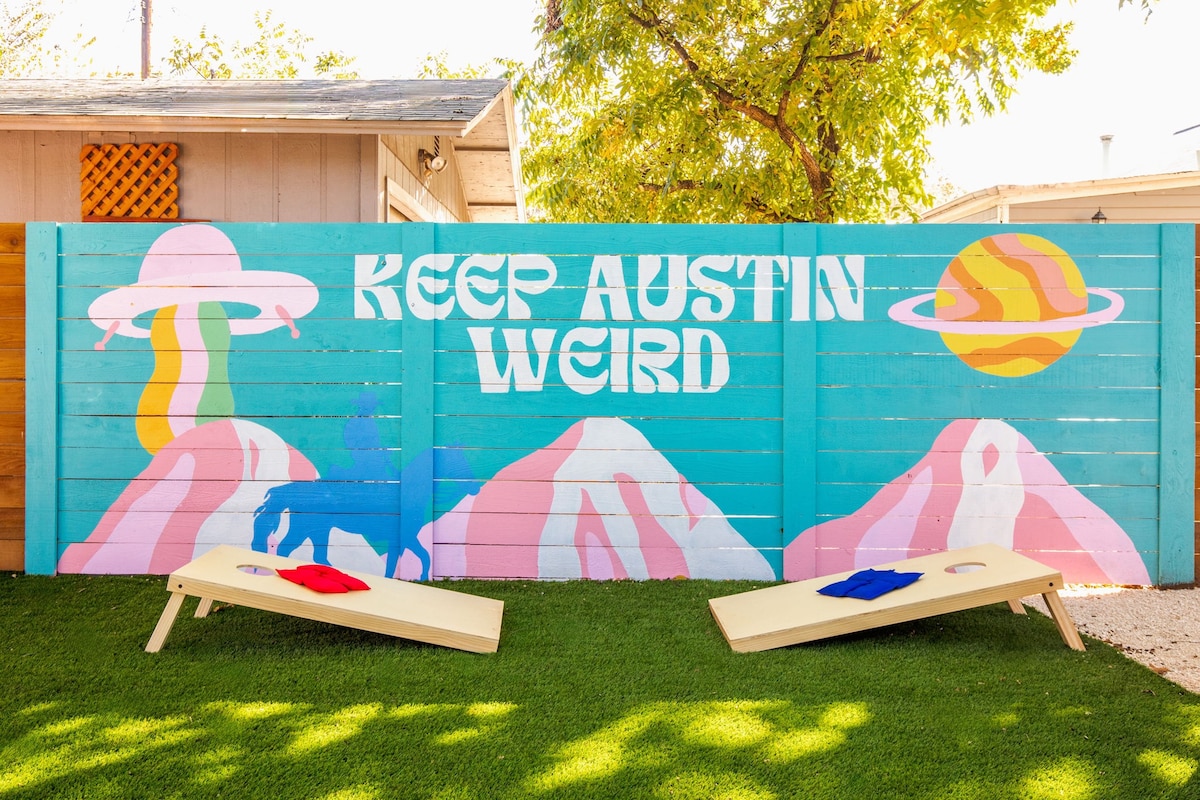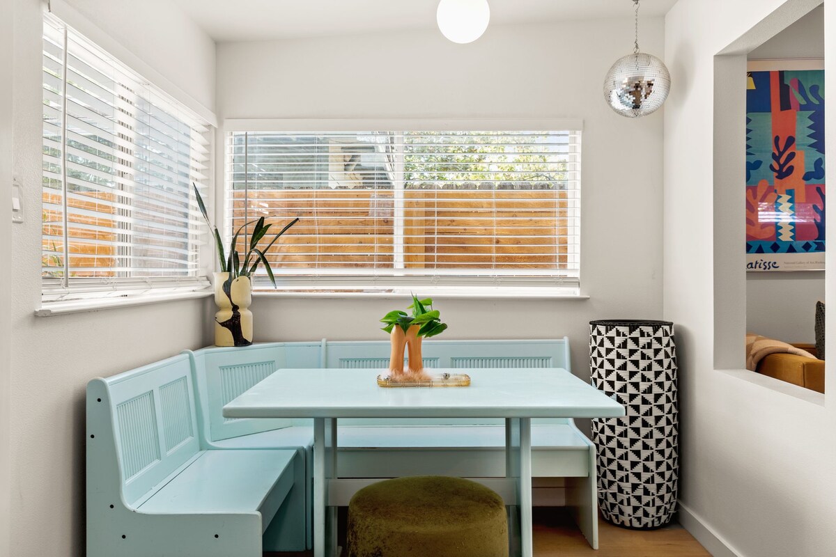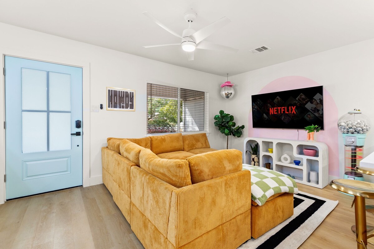 Downtown (8), Rainey St (7), UT Austin (6), The Domain (12), East Austin (9), Zilker (12). Nestled in historic Hyde Park, easy access to H-E-B, Total Wine, Bakeries, coffee shops, and restaurants. Sleeps 14 comfortably with 9 beds.
